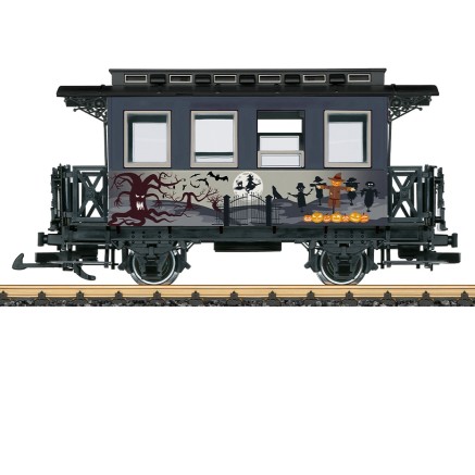 Erstmalig erscheint ein Themenwagen Halloween in 2024. Vielleicht ergänzt schon bald ein ganzer Zug die Halloween-Dekoration im Garten?!